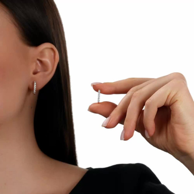Серьги с 14 бриллиантами природными, 0.42 карат, огранка круг 57 граней, цвет 3, чистота 6, тип огранки А; Розовое золото 585 пробы.