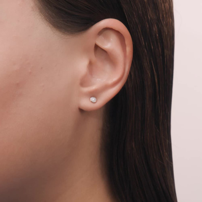 Серьги с 2 бриллиантами природными, 0.02 карат, огранка круг 57 граней, цвет 5, чистота 6, тип огранки А; 16 бриллиантами природными, 0.04 карат, огранка круг 17 граней, цвет 2, чистота 2, тип огранки А; Розовое золото 585 пробы.