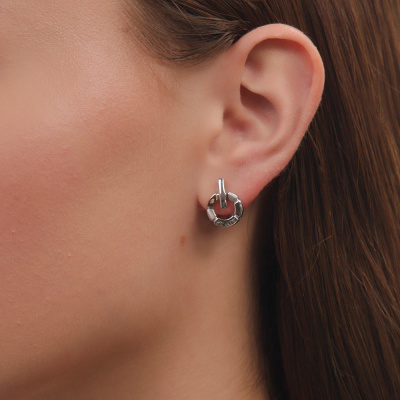 Серьги с 2 бриллиантами природными, 0.006 карат, огранка круг 17 граней, цвет 3, чистота 3, тип огранки А; элементы из золота Au585; Серебро 925 пробы.