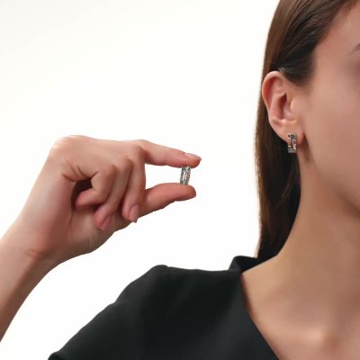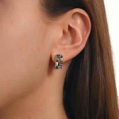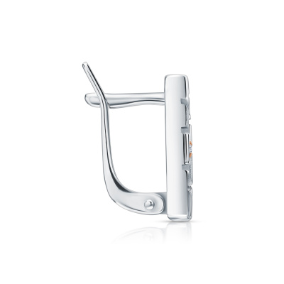 Серьги с 2 бриллиантами природными, 0.007 карат, огранка круг 17 граней, цвет 3, чистота 3, тип огранки Б; элементы из золота Au585, 0.007 карат; Серебро 925 пробы.