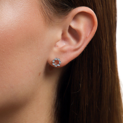 Серьги с 2 бриллиантами природными, 0.006 карат, огранка круг 17 граней, цвет 2, чистота 3, тип огранки А; Серебро 925 пробы.