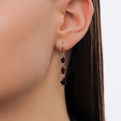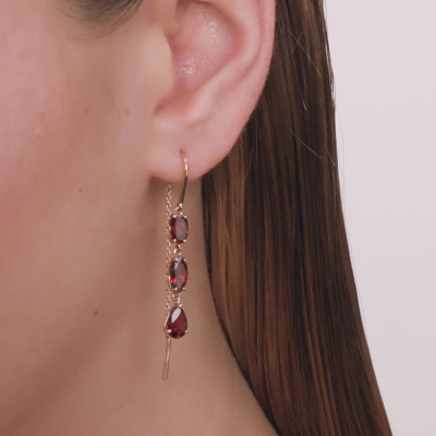 Серьги с 2 гранатами природными, 1.69 карат; 2 гранатами природными, 1.3 карат; 2 гранатами природными, 1.09 карат; Розовое золото 585 пробы.