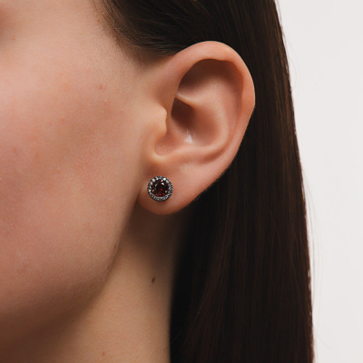 Золотые серьги с гранатами и бриллиантами