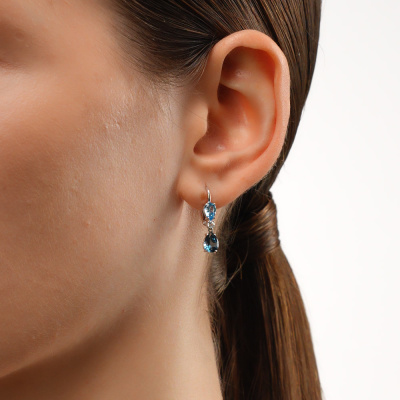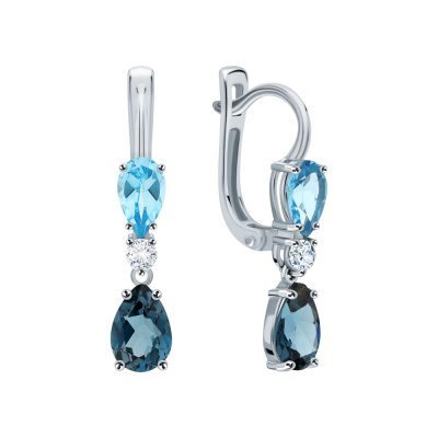 Серьги с 2 топазами лондон природными, 1.53 карат; 2 топазами свисс природными, 0.87 карат; 2 топазами бесцветными природными, 0.14 карат; Белое золото 585 пробы.