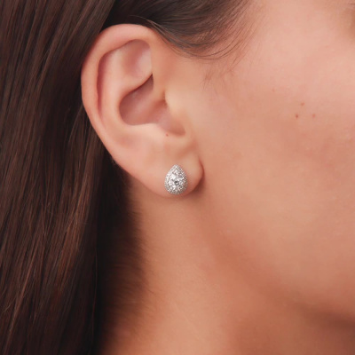 Серьги с 2 бриллиантами природными, 0.2 карат, огранка круг 57 граней, цвет 3, чистота 6, тип огранки А; 4 бриллиантами природными, 0.12 карат, огранка круг 57 граней, цвет 3, чистота 6, тип огранки А; 12 бриллиантами природными, 0.12 карат, огранка круг 57 граней, цвет 3, чистота 6, тип огранки А; 40 бриллиантами природными, 0.16 карат, огранка круг 17 граней, цвет 2, чистота 2, тип огранки А; Белое золото 585 пробы.