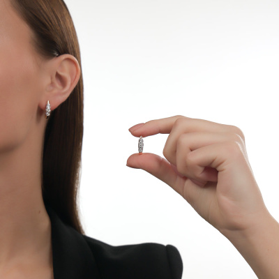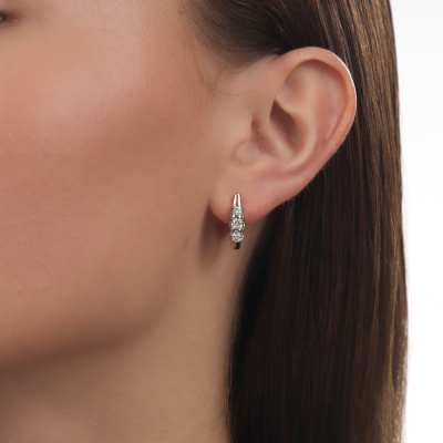 Серьги с 2 бриллиантами природными, 0.25 карат, огранка круг 57 граней, цвет 3, чистота 6, тип огранки А; 4 бриллиантами природными, 0.32 карат, огранка круг 57 граней, цвет 3, чистота 6, тип огранки А; Розовое золото 585 пробы.