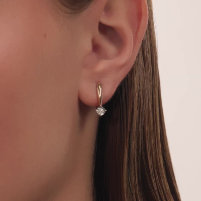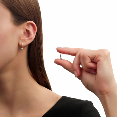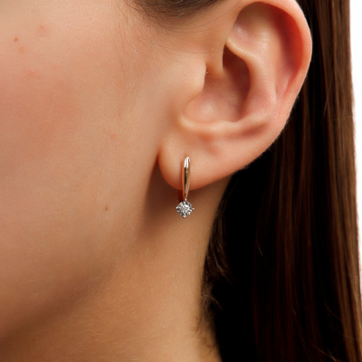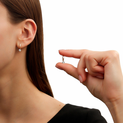 Серьги с 2 бриллиантами природными, 0.06 карат, огранка круг 57 граней, цвет 3, чистота 6, тип огранки А; Розовое и белое золото 585 пробы.
