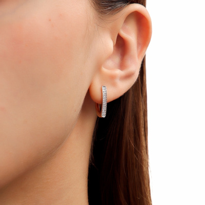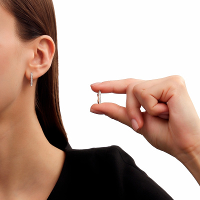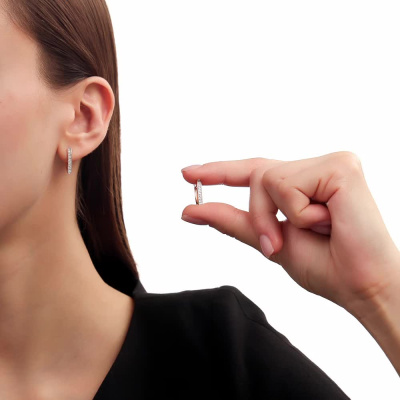 Серьги с 60 бриллиантами природными, 0.13 карат, огранка круг 17 граней, цвет 2, чистота 2, тип огранки А; Розовое золото 585 пробы.
