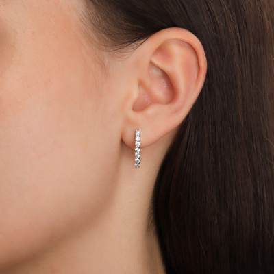Серьги с 14 бриллиантами природными, 0.53 карат, огранка круг 57 граней, цвет 3, чистота 6, тип огранки А; Белое золото 585 пробы.