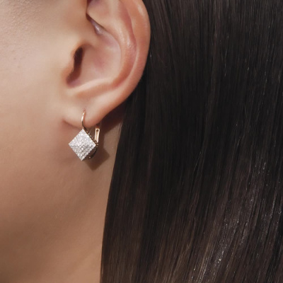 Серьги с 128 бриллиантами природными, 0.44 карат, огранка круг 17 граней, цвет 2, чистота 2, тип огранки А; Розовое золото 585 пробы.