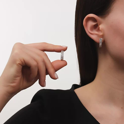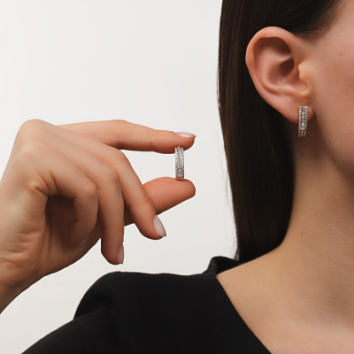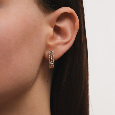 Серьги с 20 бриллиантами природными, 0.67 карат, огранка круг 57 граней, цвет 3, чистота 6, тип огранки А; 68 бриллиантами природными, 0.26 карат, огранка круг 17 граней, цвет 2, чистота 2, тип огранки А; Розовое золото 585 пробы.