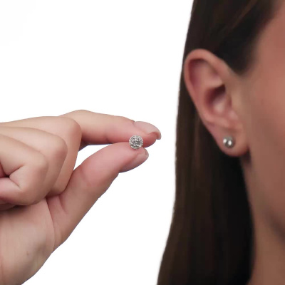 Серьги с 24 бриллиантами природными, 0.05 карат, огранка круг 17 граней, цвет 2, чистота 2, тип огранки А; 2 топазами бесцветными природными, 0.63 карат; Белое золото 585 пробы.