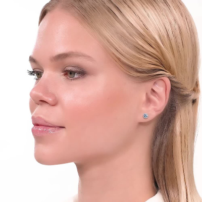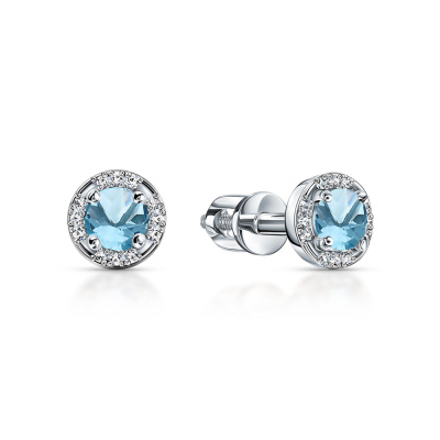 Серьги с 24 бриллиантами природными, 0.05 карат, огранка круг 17 граней, цвет 2, чистота 2, тип огранки А; 2 топазами свисс природными, 0.59 карат, тип огранки В; Белое золото 585 пробы.