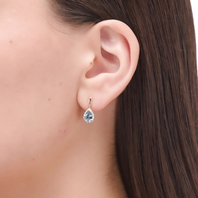 Серьги с 34 бриллиантами природными, 0.11 карат, огранка круг 17 граней, цвет 2, чистота 2, тип огранки А; 2 топазами свисс природными, 1.42 карат; Розовое золото 585 пробы.