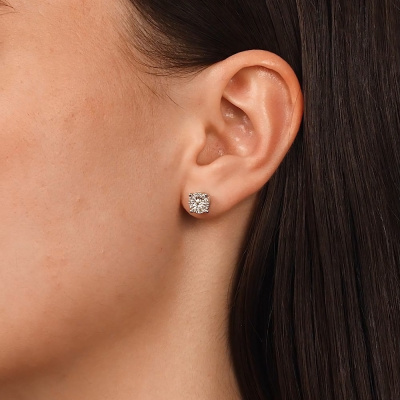 Серьги с 2 бриллиантами природными, 0.11 карат, огранка круг 57 граней, цвет 4, чистота 5, тип огранки А; 24 бриллиантами природными, 0.1 карат, огранка круг 17 граней, цвет 2, чистота 2, тип огранки А; Белое золото 585 пробы.