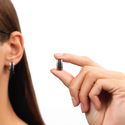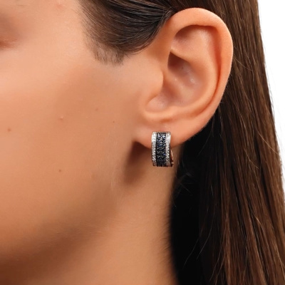 Серьги с 60 бриллиантами природными, 0.24 карат, огранка круг 17 граней, цвет 2, чистота 2, тип огранки А; 36 сапфирами природными, 0.95 карат, цвет 2, чистота 2, тип огранки В; Розовое золото 585 пробы.