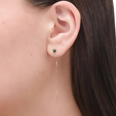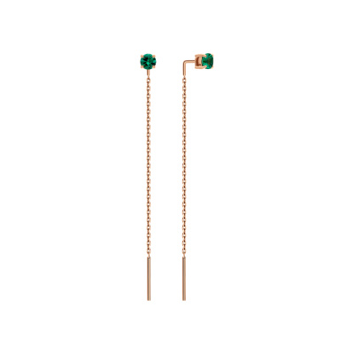 Серьги с 2 гидротермальными изумрудами, 0.3 карат; Розовое золото 585 пробы.