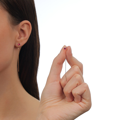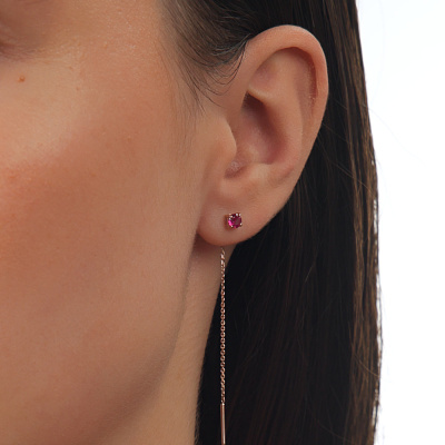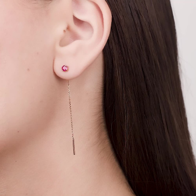 Серьги с 2 рубинами синтетическими, 0.39 карат; Розовое золото 585 пробы.