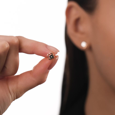 Серьги с 2 бриллиантами природными, 0.006 карат, огранка круг 17 граней, цвет 2, чистота 2, тип огранки Б; Розовое золото 375 пробы.