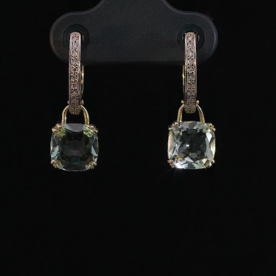 Золотые серьги с празиолитами и бриллиантами