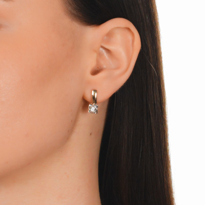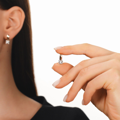 Серьги с 2 бриллиантами природными, 0.04 карат, огранка круг 57 граней, цвет 3, чистота 6; Розовое и белое золото 375 пробы.