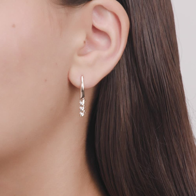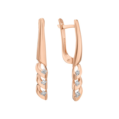Серьги с 6 бриллиантами природными, 0.05 карат, огранка круг 57 граней, цвет 3, чистота 6; Розовое золото 375 пробы.