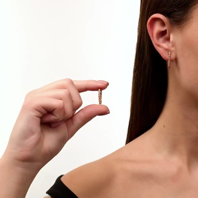 Серьги с 14 бриллиантами природными, 0.12 карат, огранка круг 57 граней, цвет 3, чистота 6; Розовое золото 375 пробы.