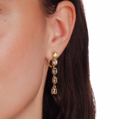 Серьги с 2 кварцами лимонными природными, 1.14 карат; 8 кварцами лимонными природными, 3.23 карат; Желтое золото 585 пробы.
