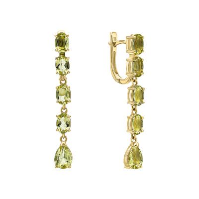 Золотые серьги с кварцами лимонными природными