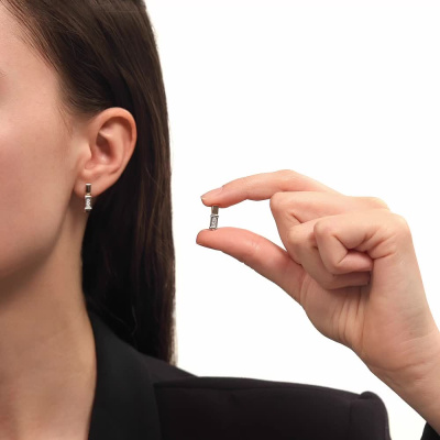 Серьги с 6 бриллиантами природными, 0.08 карат, огранка круг 57 граней, цвет 3, чистота 6; Розовое золото 375 пробы.