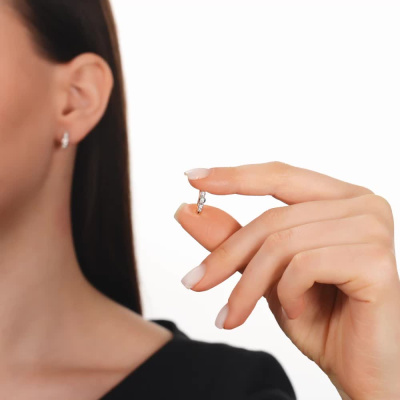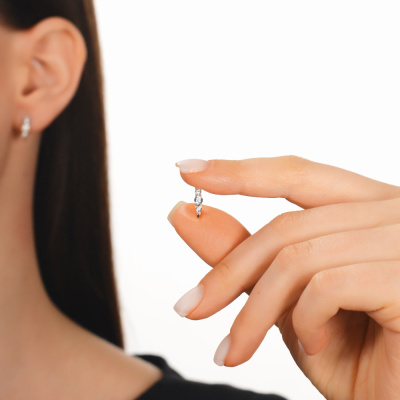 Серьги с 2 бриллиантами природными, 0.04 карат, огранка круг 57 граней, цвет 3, чистота 6; 4 бриллиантами природными, 0.05 карат, огранка круг 57 граней, цвет 3, чистота 6; 4 бриллиантами природными, 0.03 карат, огранка круг 57 граней, цвет 3, чистота 6; Розовое и белое золото 375 пробы.