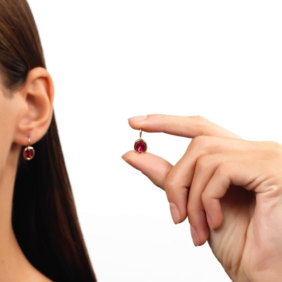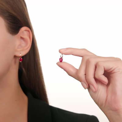 Серьги с 2 рубинами синтетическими, 2.4 карат; Розовое золото 585 пробы.