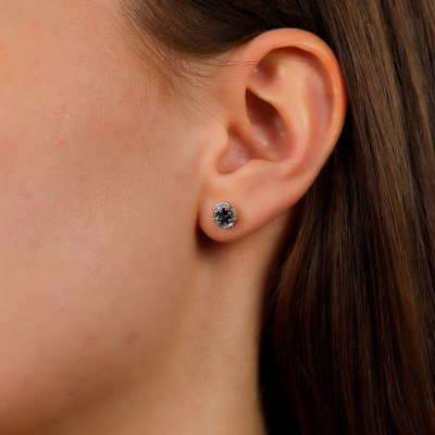 Серьги с 24 бриллиантами природными, 0.05 карат, огранка круг 17 граней, цвет 2, чистота 2, тип огранки А; 2 топазами лондон природными, 0.6 карат; Розовое золото 585 пробы.