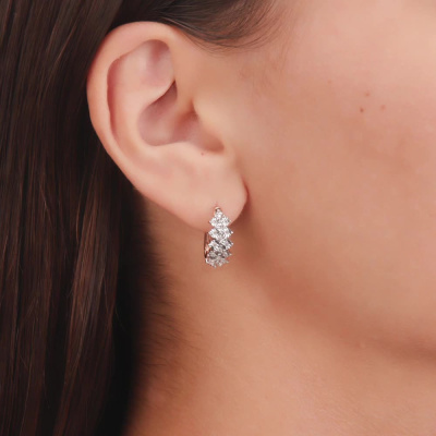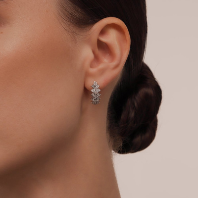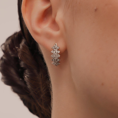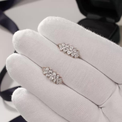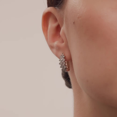 Серьги с 32 бриллиантами природными, 0.15 карат, огранка круг 17 граней, цвет 2, чистота 2, тип огранки А; Розовое и белое золото 585 пробы.