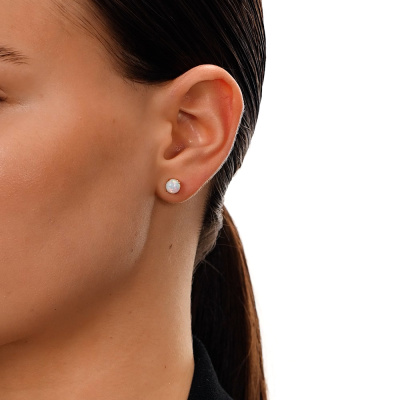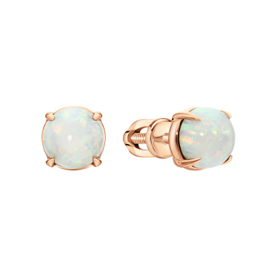 Серьги с 2 опалами белыми синтетическими, 1.13 карат; Розовое золото 585 пробы.