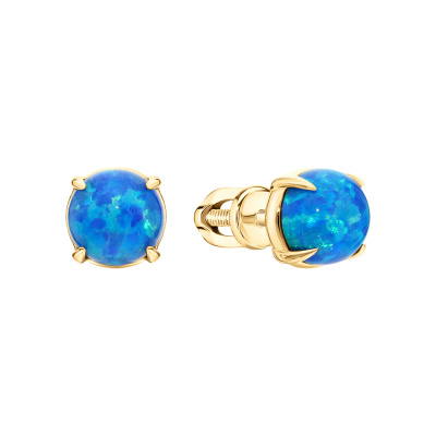 Серьги с 2 опалами синими синтетическими, 1.16 карат; Желтое золото 585 пробы.