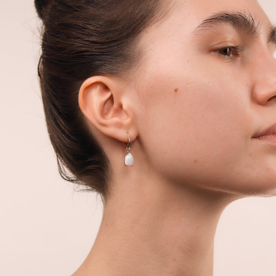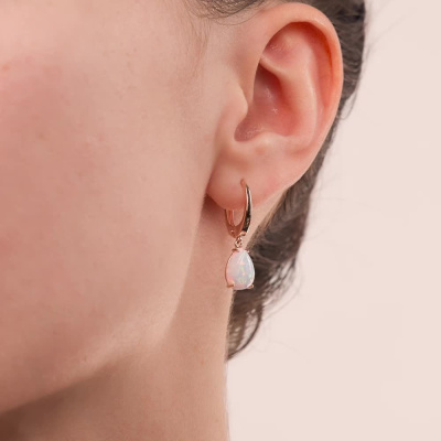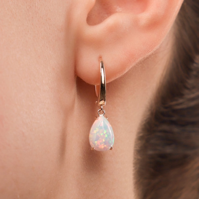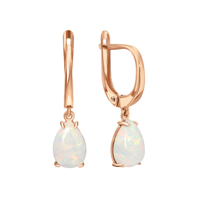 Серьги с 2 опалами белыми синтетическими, 2.33 карат; Розовое золото 585 пробы.