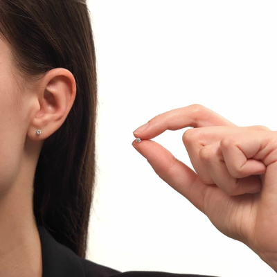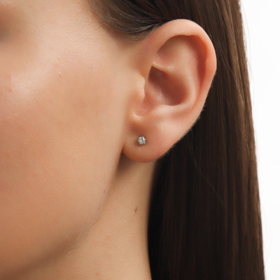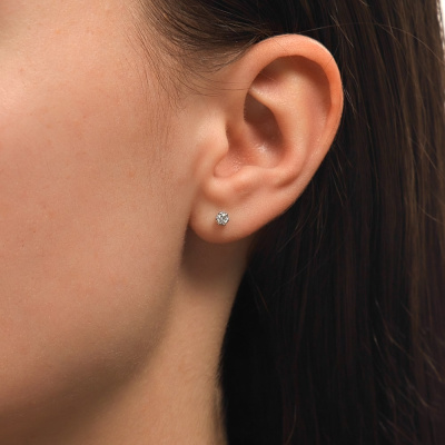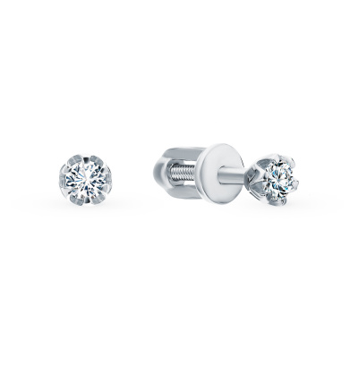 Серьги с 2 бриллиантами природными, 0.14 карат, огранка круг 57 граней, цвет 3, чистота 6, тип огранки А; Белое золото 585 пробы.