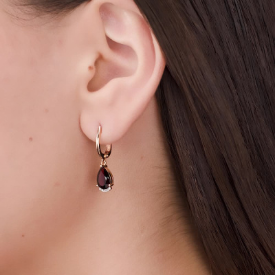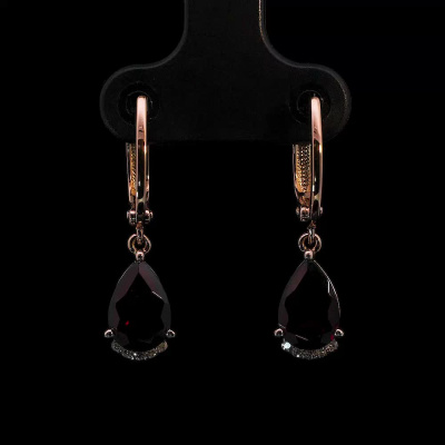 Серьги с 10 бриллиантами природными, 0.04 карат, огранка круг 17 граней, цвет 2, чистота 2, тип огранки А; 2 гранатами природными, 3.07 карат; Розовое золото 585 пробы.