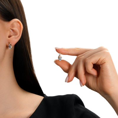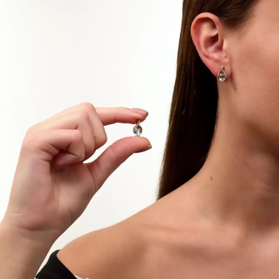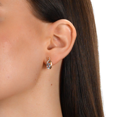 Серьги с 12 бриллиантами природными, 0.04 карат, огранка круг 17 граней, цвет 2, чистота 2, тип огранки А; 2 топазами скай природными, 1.87 карат; Розовое золото 585 пробы.