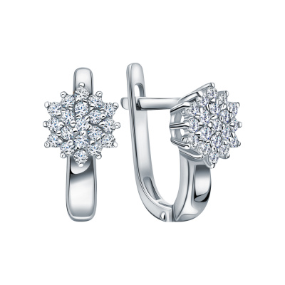 Серьги с 38 бриллиантами природными, 0.36 карат, огранка круг 57 граней, цвет 4, чистота 6, тип огранки А; Белое золото 585 пробы.