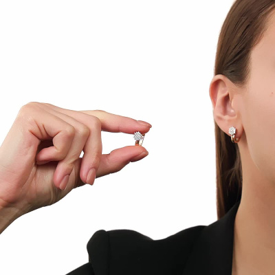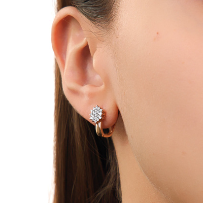 Серьги с 38 бриллиантами природными, 0.35 карат, огранка круг 57 граней, цвет 4, чистота 6, тип огранки А; Розовое золото 585 пробы.