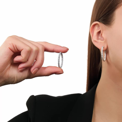 Серьги с 46 бриллиантами природными, 3.31 карат, огранка круг 57 граней, цвет 3, чистота 6, тип огранки А; Белое золото 585 пробы.