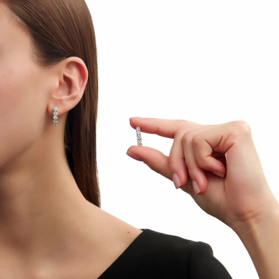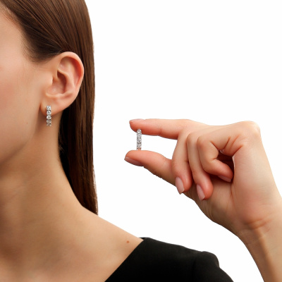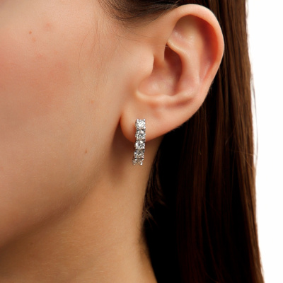 Серьги с 10 бриллиантами природными, 1.85 карат, огранка круг 57 граней, цвет 3, чистота 6, тип огранки А; Белое золото 585 пробы.