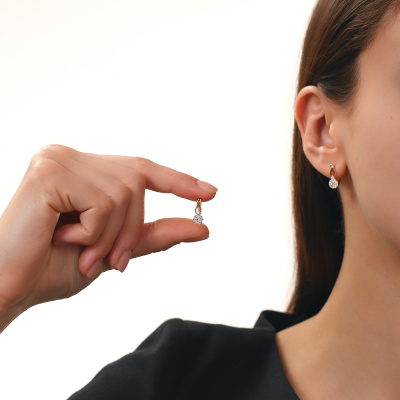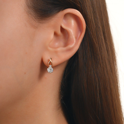 Серьги с 2 бриллиантами природными, 0.17 карат, огранка круг 57 граней, цвет 3, чистота 6, тип огранки А; 2 бриллиантами природными, 0.04 карат, огранка круг 57 граней, цвет 3, чистота 6, тип огранки А; 16 бриллиантами природными, 0.22 карат, огранка круг 57 граней, цвет 3, чистота 6, тип огранки А; Розовое золото 585 пробы.