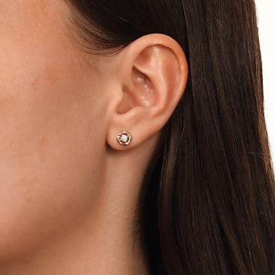 Серьги с 2 бриллиантами природными, 0.2 карат, огранка круг 57 граней, цвет 3, чистота 6, тип огранки А; Розовое золото 585 пробы.