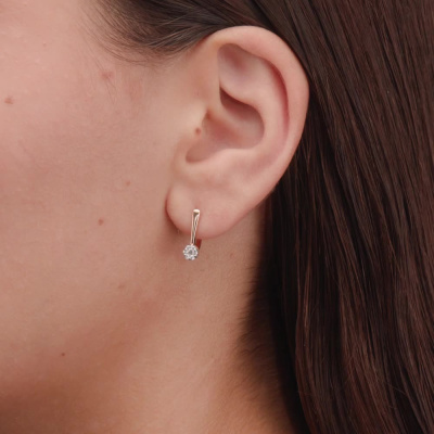 Серьги с 2 бриллиантами природными, 0.05 карат, огранка круг 57 граней, цвет 3, чистота 6, тип огранки А; 12 бриллиантами природными, 0.12 карат, огранка круг 57 граней, цвет 3, чистота 6, тип огранки А; Розовое золото 585 пробы.
