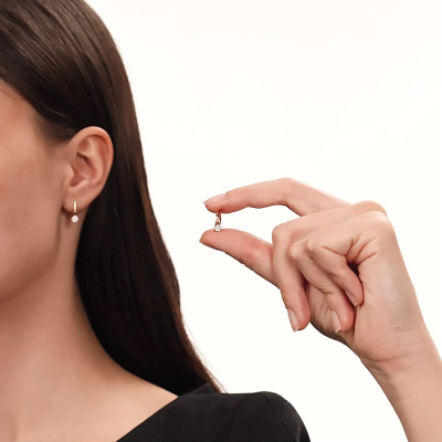 Серьги с 2 бриллиантами природными, 0.05 карат, огранка круг 57 граней, цвет 3, чистота 6, тип огранки А; 12 бриллиантами природными, 0.12 карат, огранка круг 57 граней, цвет 3, чистота 6, тип огранки А; Розовое золото 585 пробы.