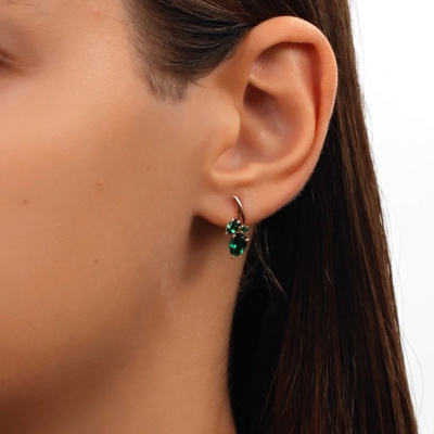 Серьги с 2 гидротермальными изумрудами, 1.25 карат; 2 гидротермальными изумрудами, 0.33 карат; 2 гидротермальными изумрудами, 0.06 карат; Розовое золото 585 пробы.