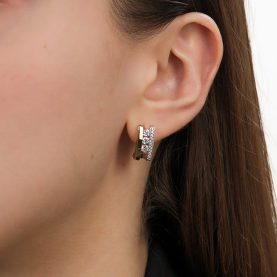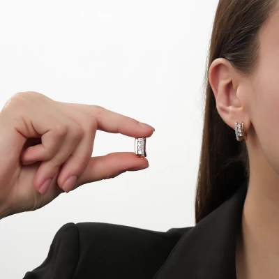 Серьги с 6 бриллиантами природными, 0.61 карат, огранка круг 57 граней, цвет 3, чистота 7, тип огранки А; 24 бриллиантами природными, 0.1 карат, огранка круг 57 граней, цвет 3, чистота 6, тип огранки А; Розовое золото 585 пробы.